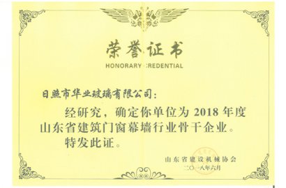 祝賀我公司被山東省建機協會確定為“2018年度山東省建筑門窗幕墻行業骨干企業”